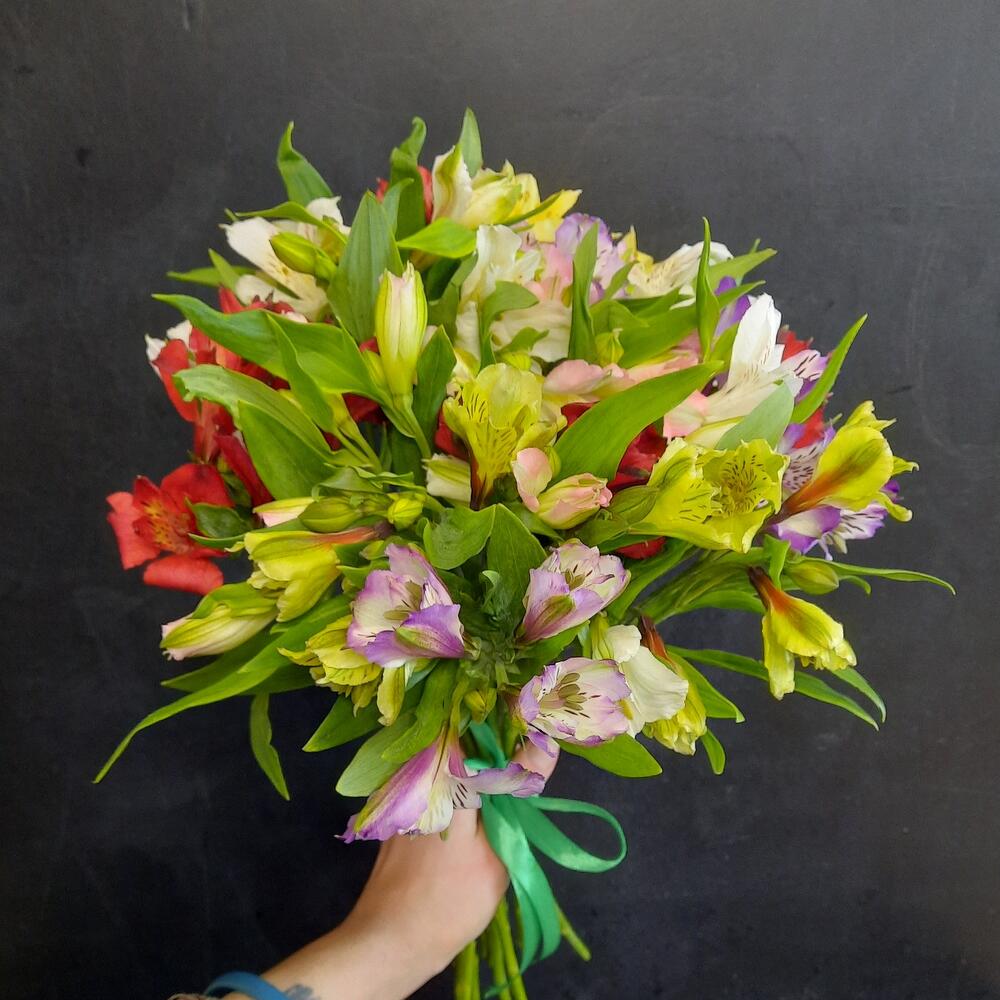 Лента атласная – 2 шт.альстромерия микс – 17 шт.
