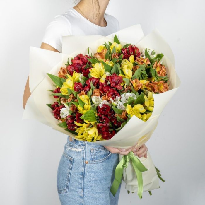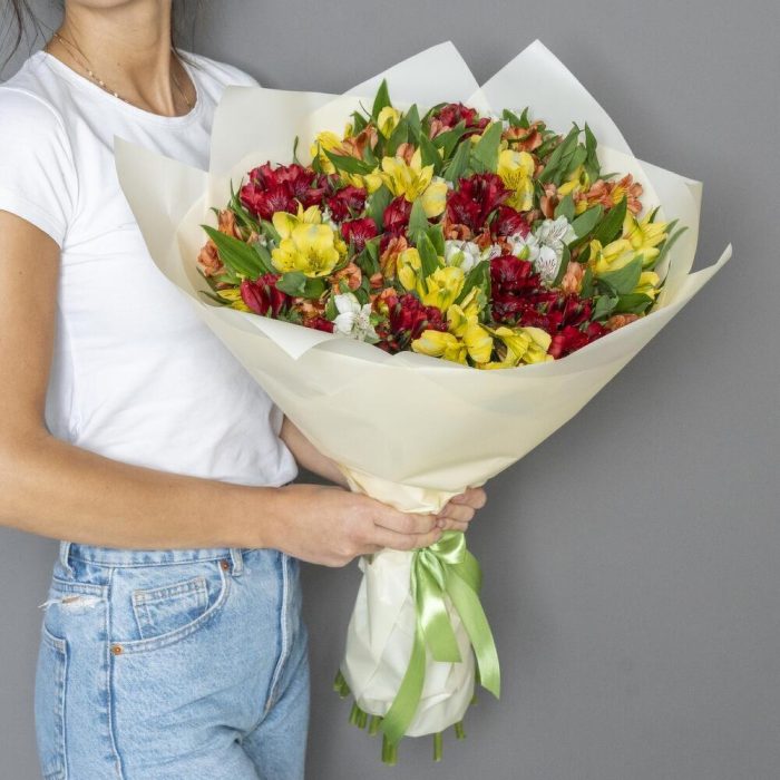 Альстромерия – 31 шт. Упаковка дизайнерская – 1 шт. Открыточка с вашими пожеланиями – 1 шт.