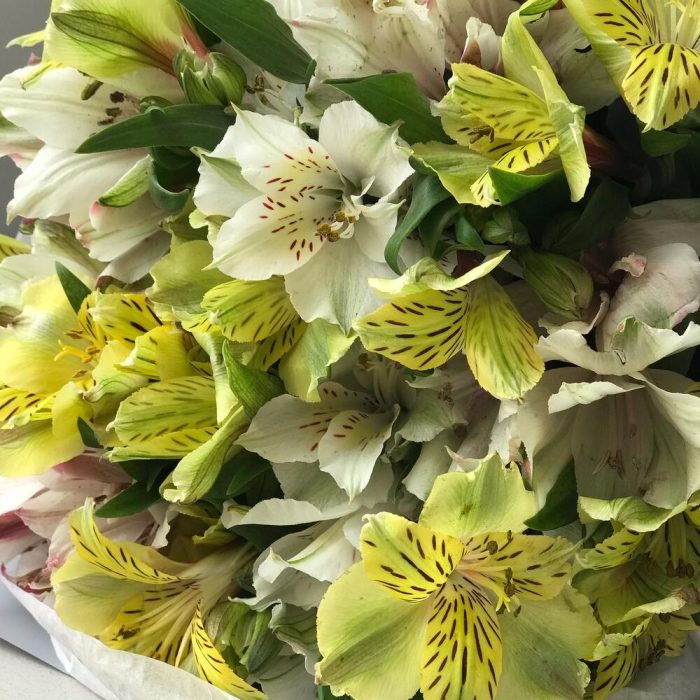 Альстромерия – 11 шт.Лента атласная – 1 шт.Тишью – 1 шт.Корейская пленка – 3 шт.