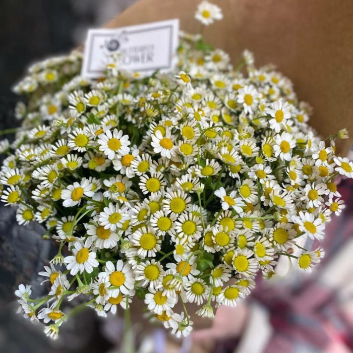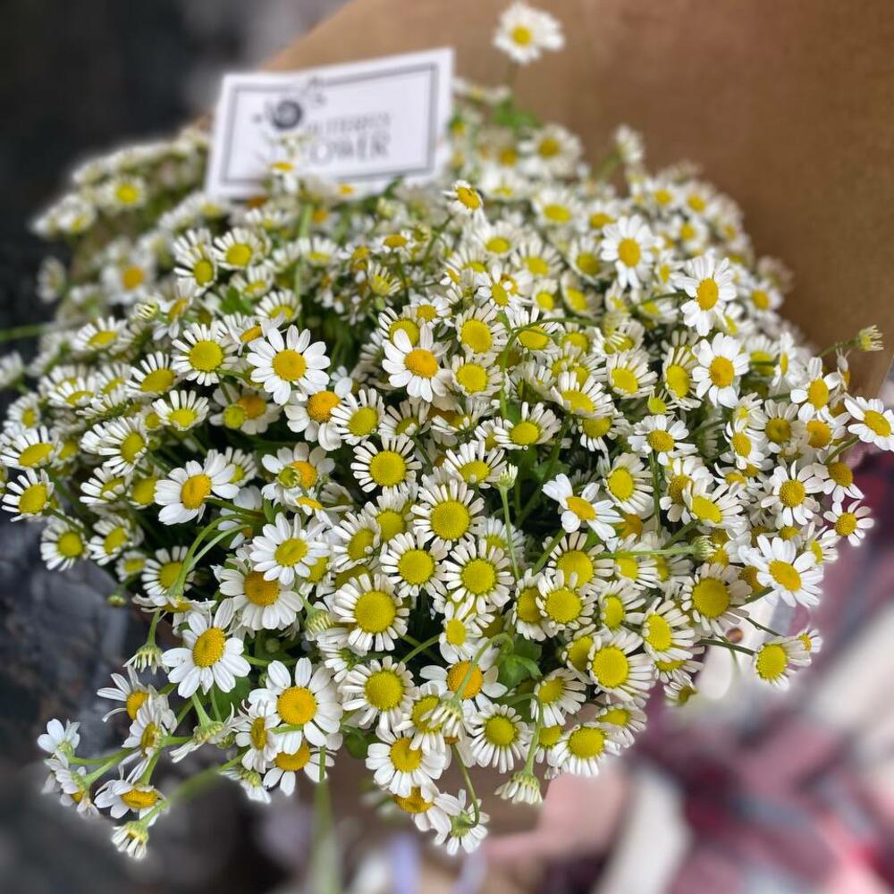Букет из 21 матрикарии в стильной крафтовой упаковке “Ласкабан”