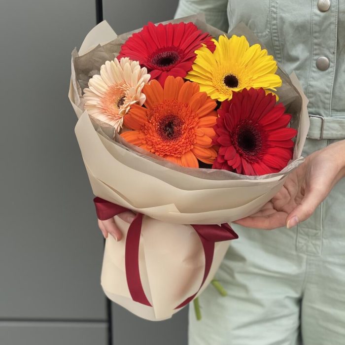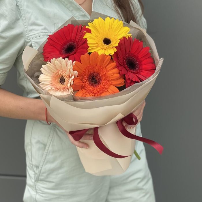Писташ – 1 шт. Оформление – 1 шт. герберы – 5 шт.