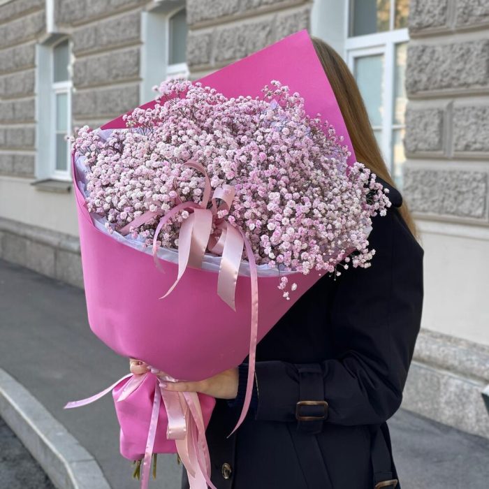 Гипсофила – 13 шт.Лента – 3 шт.Тишью – 3 шт.Упаковка дизайнерская – 1 шт.