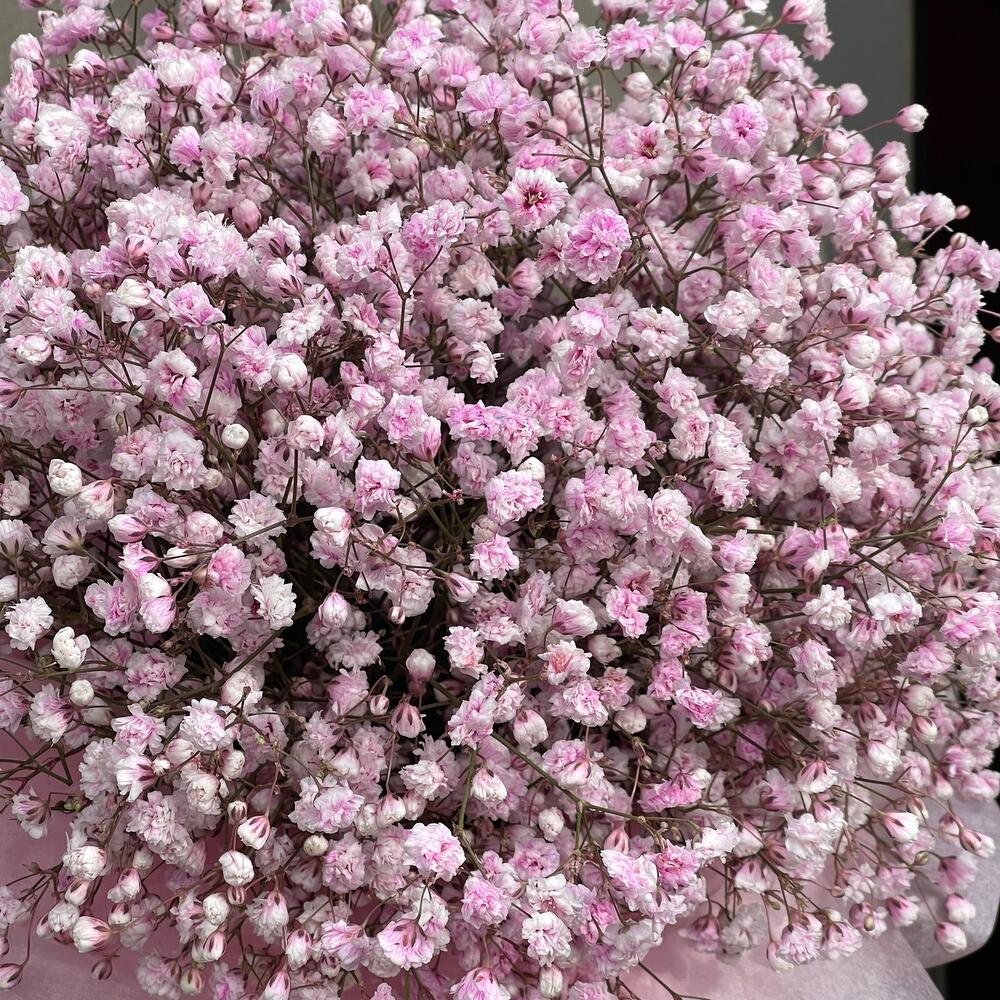 Лента – 2 шт.Тишью – 1 шт.Шляпная коробка – 1 шт.Оазис флористический – 1 шт.Гипсофила крашеная – 6 шт.