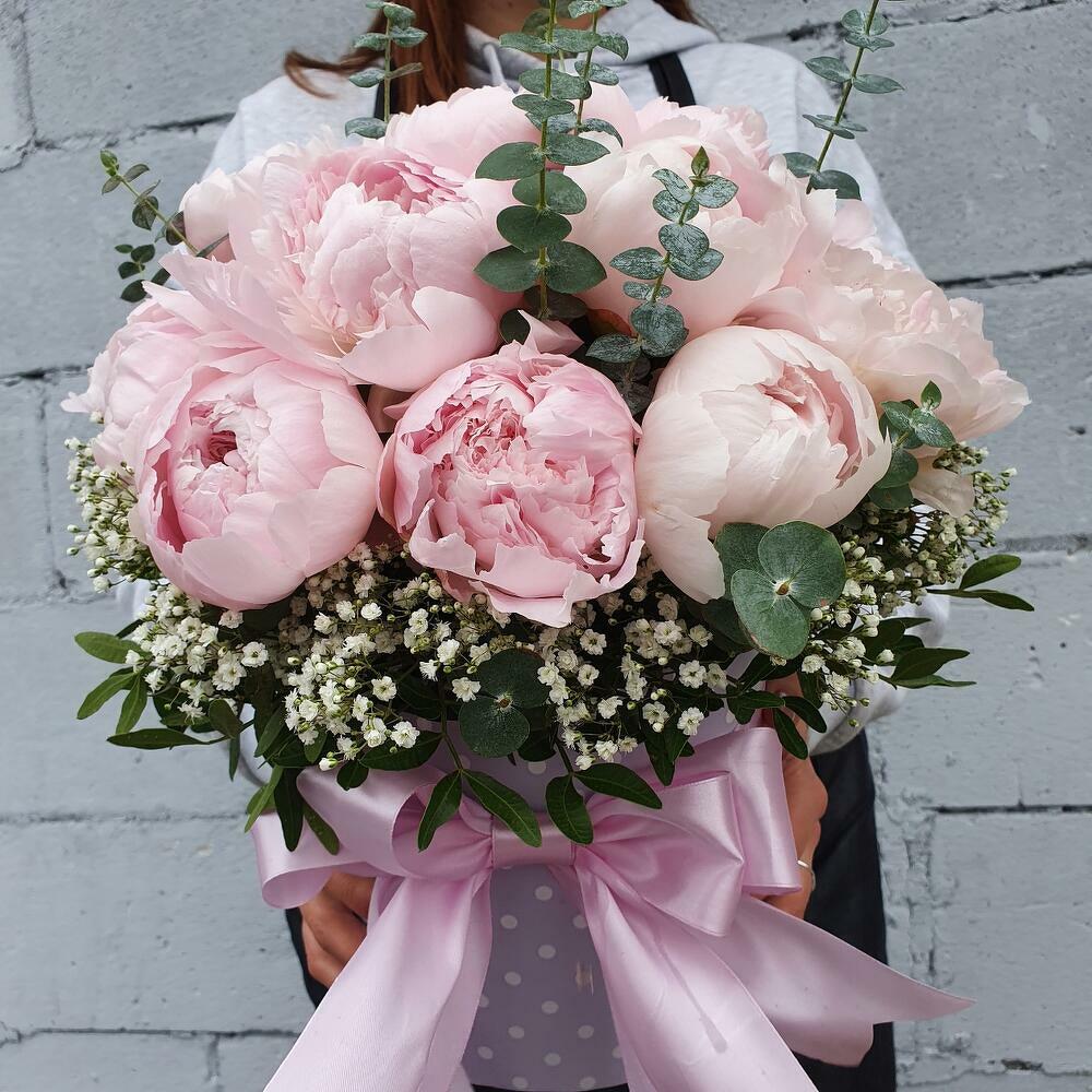 Коробка с пионами и гортензией