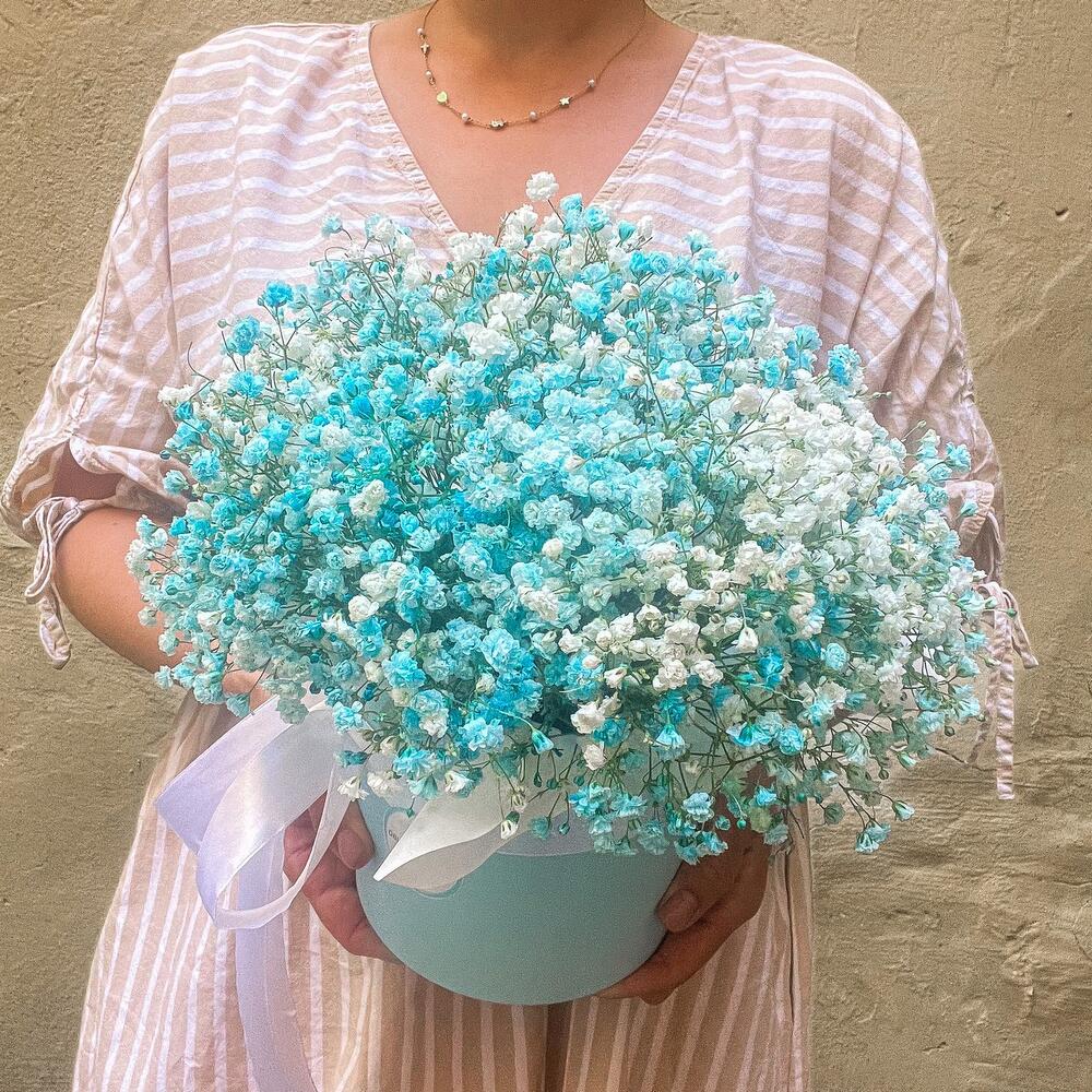 Коробка шляпная – 1 шт.Гипсофила – 9 шт.Лента атласная – 2 шт.Губка флористическая – 1 шт.