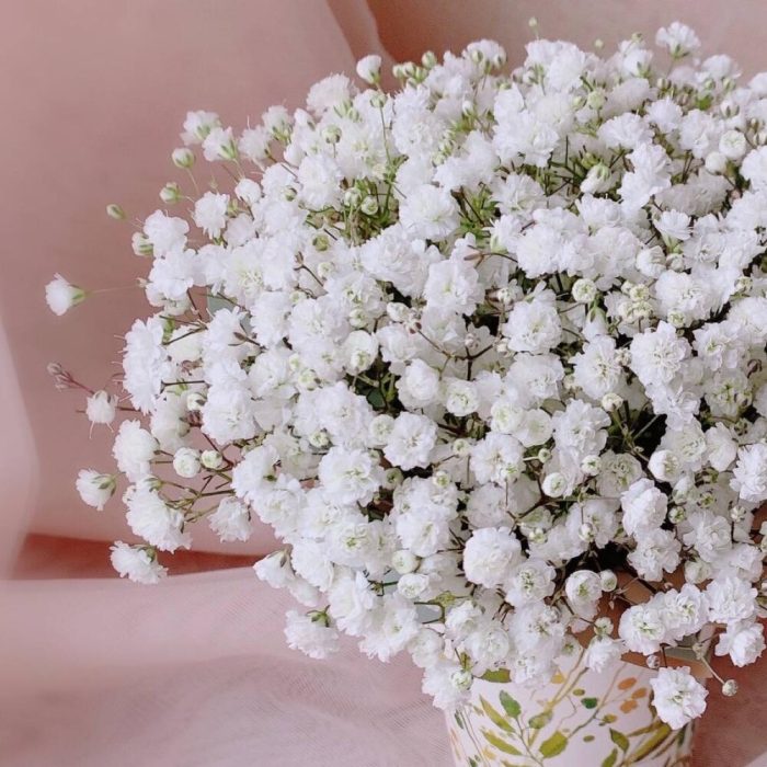 “Сиреневый туман” – композиция из гипсофилы в шляпной коробке
