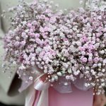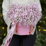 “Сиреневый туман” – композиция из гипсофилы в шляпной коробке