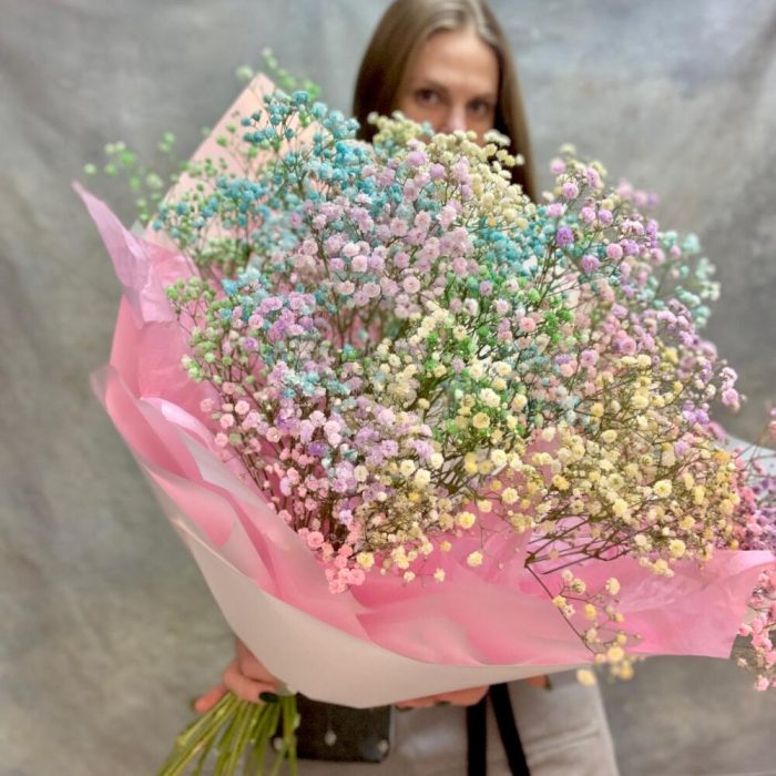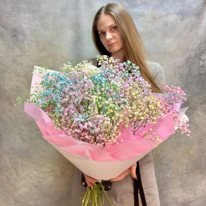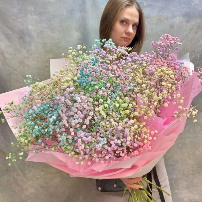 Нежный букет из радужной гипсофилы
