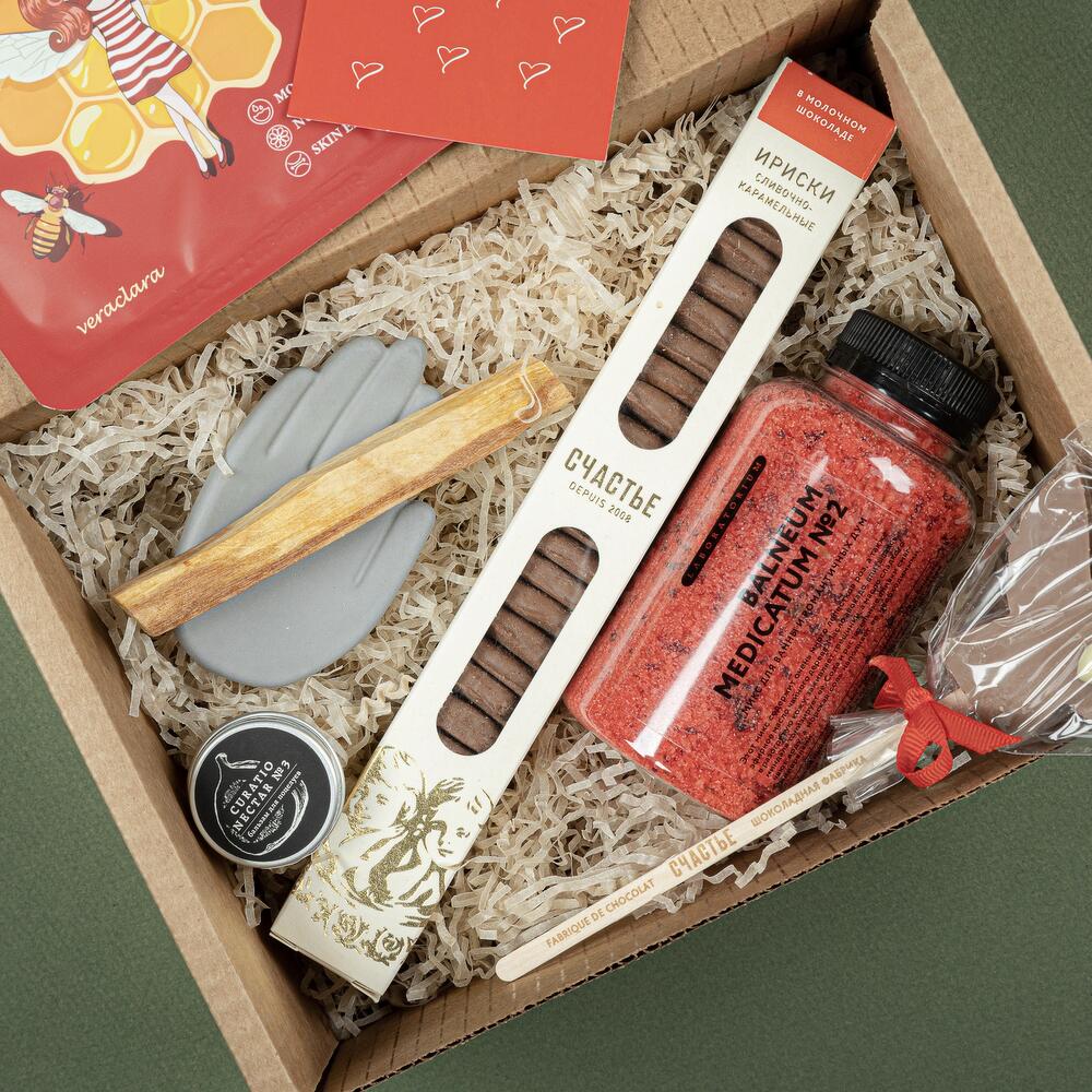 соль для ванной laboratorium – 1 шт.ириски “счастье” – 1 шт.благовоние пало санто – 1 шт.подставка-ладошка для благовоний из гипсофила – 1 шт.бальзам для губ laboratorium – 1 шт.ангел “счастье” – 1 шт.маска тканевая для лица – 1 шт.