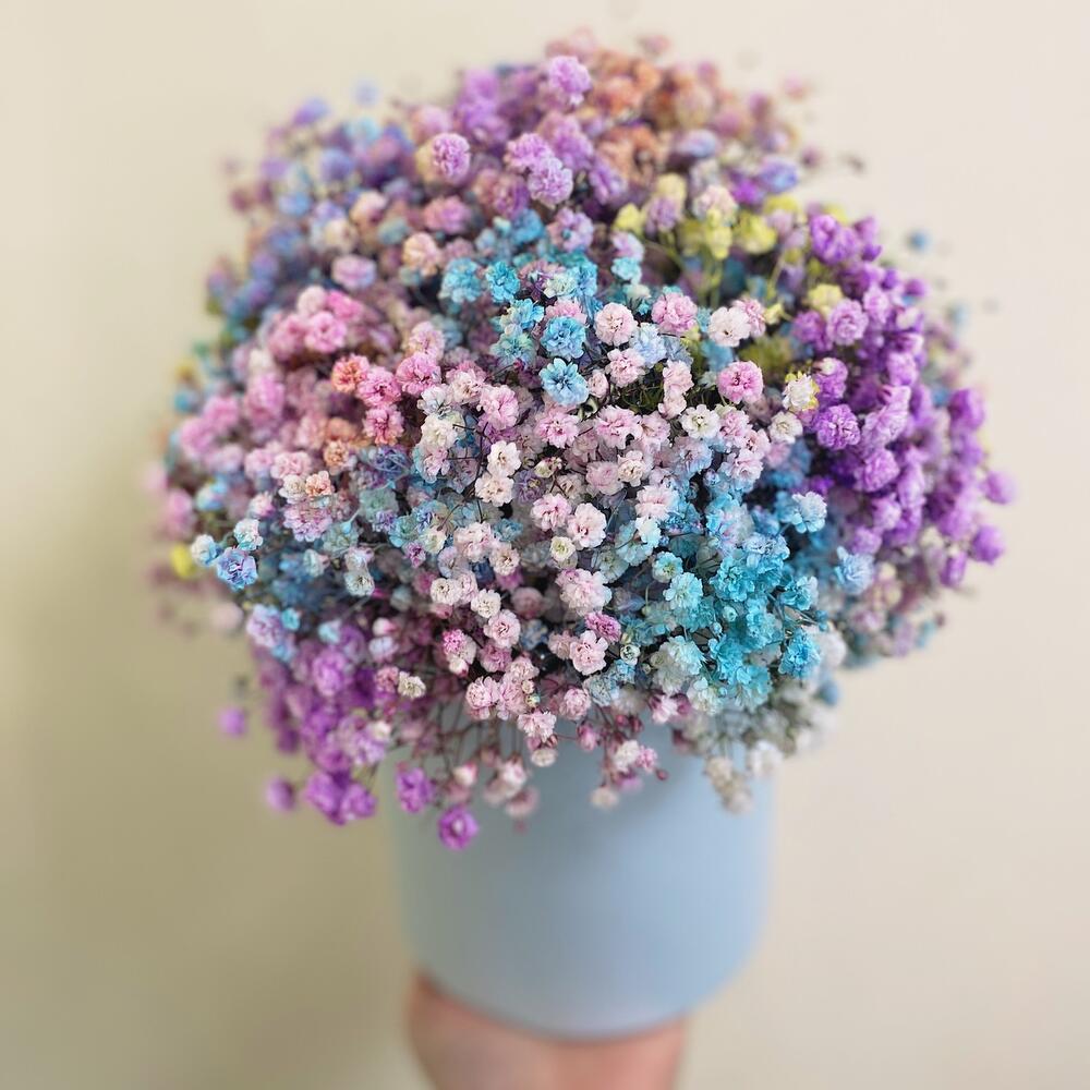 Композиция из пушистой разноцветной гипсофилы станет отличным подарком для поднятия настроения Советы по уходу:✅️Для продления жизни цветов композицию необходимо поливать✅️Старайтесь выбрать максимально прохладное место для композиции, вдали от солнечных лучей и отопительных приборовКаждую композицию перед отправкой мы оборачиваем в прозрачную плёнку для дополнительной защиты