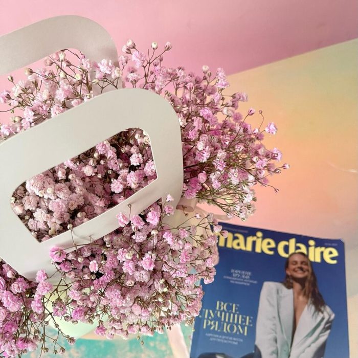 Стойкая гипсофила в крафтовом пакете – отличный подарок в день рождения!