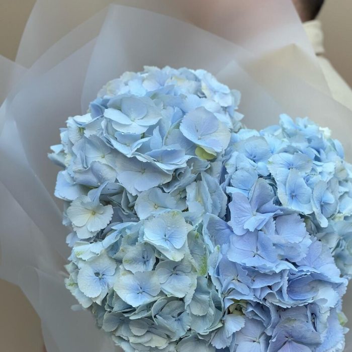 Лента атласная – 2 шт.Упаковка дизайнерская – 4 шт.гортензия нидерланды – 5 шт.