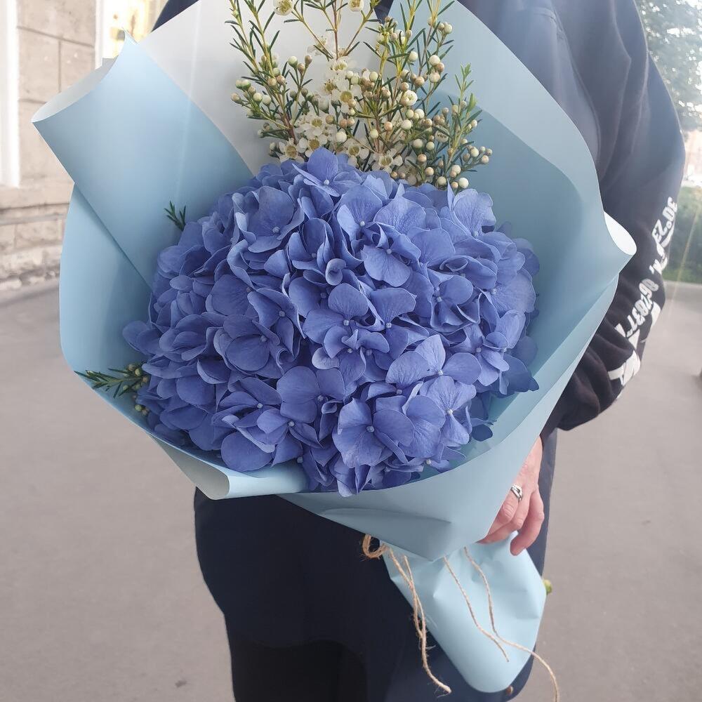 Гортензия – 1 шт.Упаковка дизайнерская – 1 шт.Лента атласная – 1 шт.Ваксфлауэр – 1 шт.