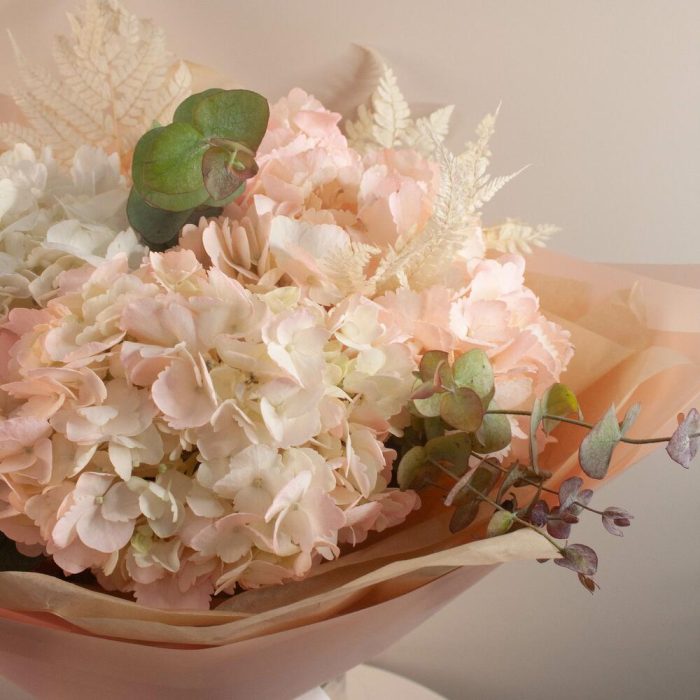 Гортензия – 3 шт. Эвкалипт – 1 шт. лист папоротника – 2 шт.