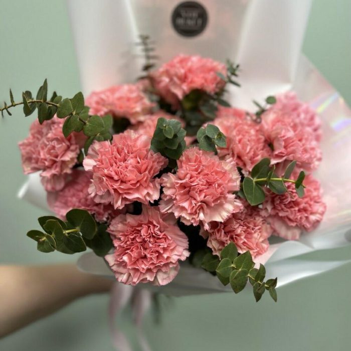 Диантус – 15 шт.Эвкалипт – 5 шт.Упаковка дизайнерская – 1 шт.