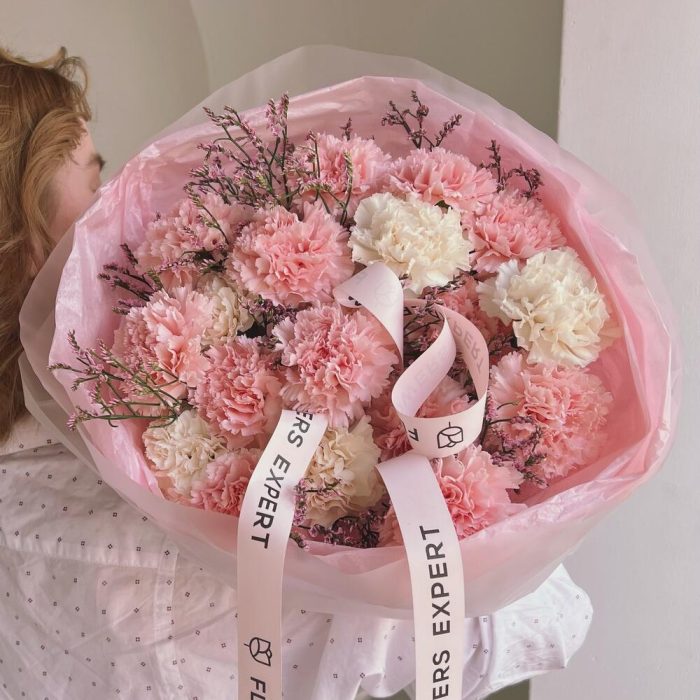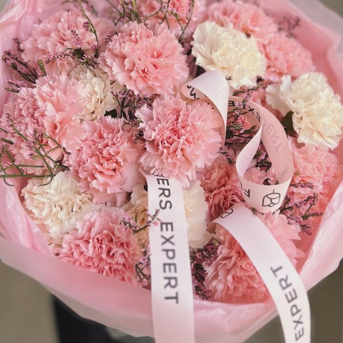 Букет из 19 пушистых гвоздик “PINK WHITE”