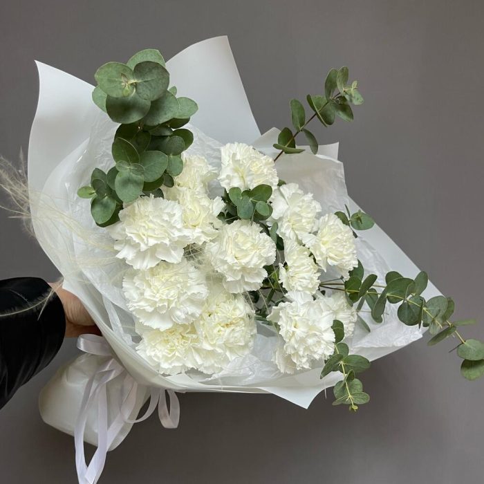 Букет из белых гвоздик и эвкалипт