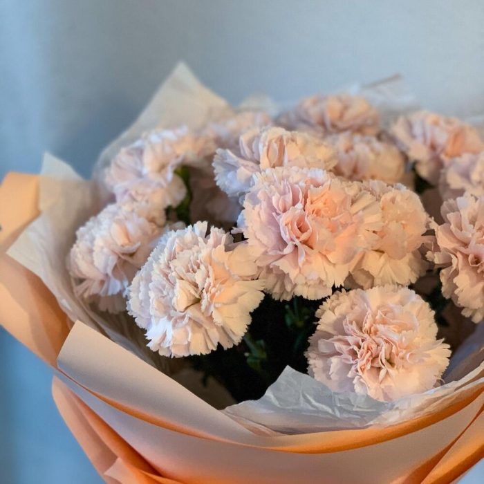 Лента – 1 шт.Тишью – 1 шт.Пленка – 1 шт.Гвоздика одноголовая – 15 шт.