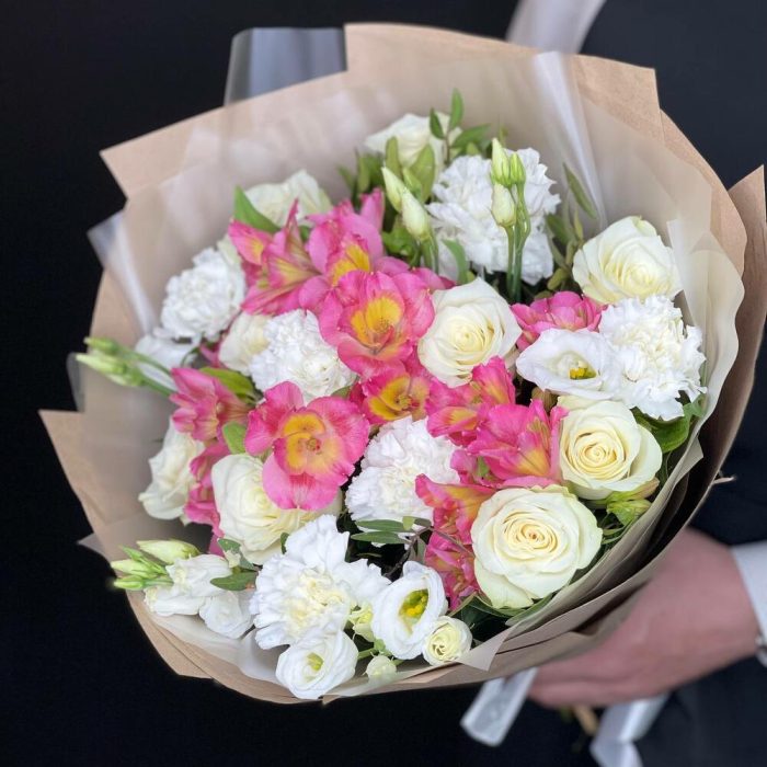 Букет с розовыми альстромериями