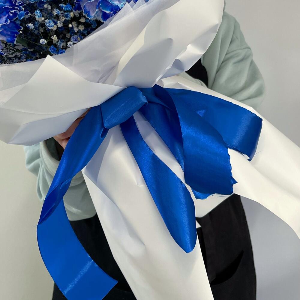 Диантус сортовой – 5 шт.Гипсофила – 2 шт.Тишью белое – 2 шт.Пленка матовая – 6 шт.