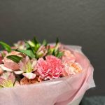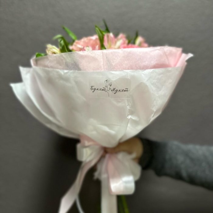 Альстромерия – 4 шт.Лента атласная – 2 шт.Тишью – 4 шт.Диантус – 3 шт.джульетта роза пионовидная – 2 шт.