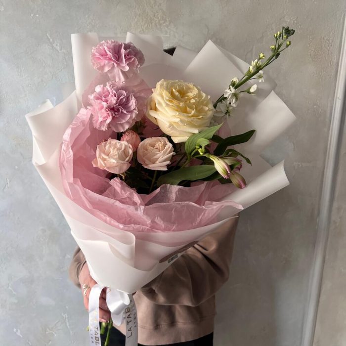 Роза – 2 шт.Диантус – 2 шт.Маттиола – 1 шт.Альстромерия – 1 шт.Упаковка дизайнерская – 1 шт.