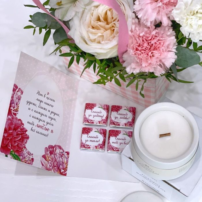 Подарочный набор для Мамы (свеча, букет, открытка с шоколадом)