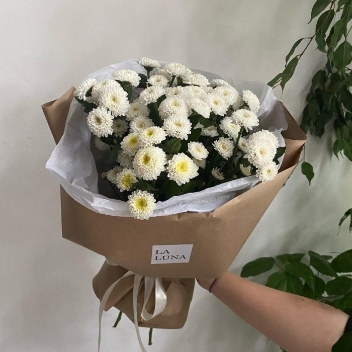 Лента атласная – 1 шт.Упаковка дизайнерская – 2 шт.Кризал (подкормка) – 1 шт.Аквапак – 1 шт.Транспортировочная коробка – 1 шт.хризантема coconut – 7 шт.инструкция по уходу за цветами – 1 шт.