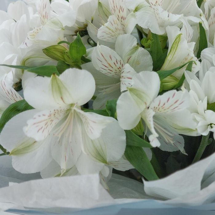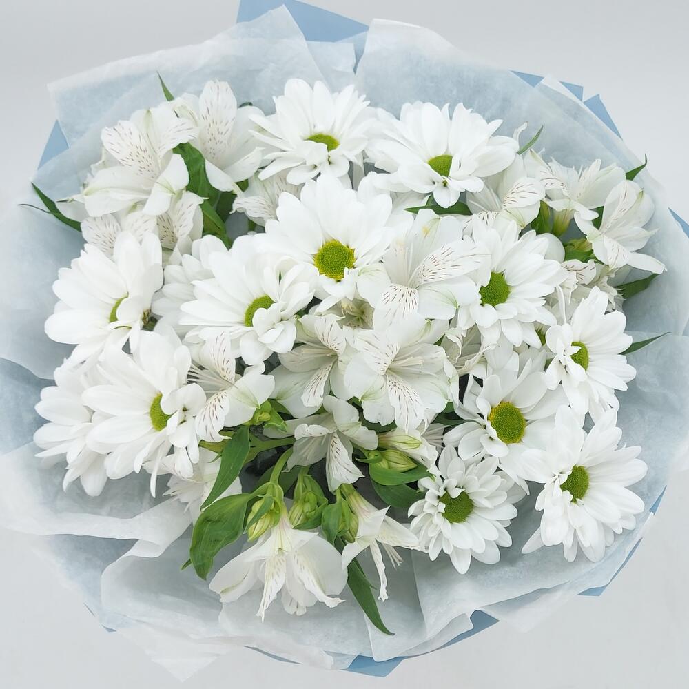 Хризантема Кустовая Бакарди белая – 3 шт.Альстромерия – 4 шт.Упаковка дизайнерская – 1 шт.