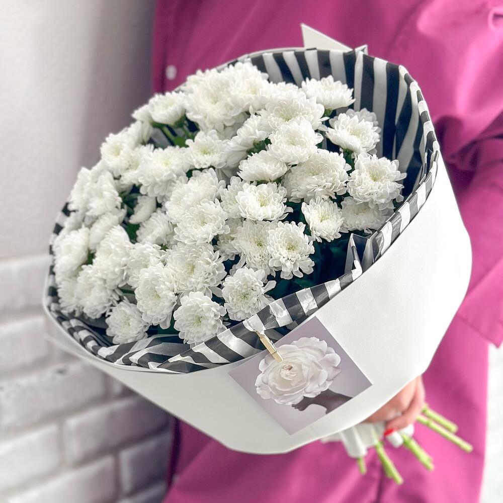 Букет из хризантем, роз, лизиантуса "Классика"