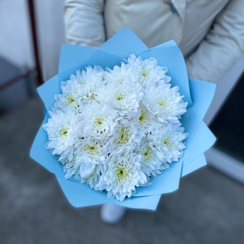 Хризантема кустовая – 5 шт.Лента атласная – 1 шт.Упаковка дизайнерская – 1 шт.