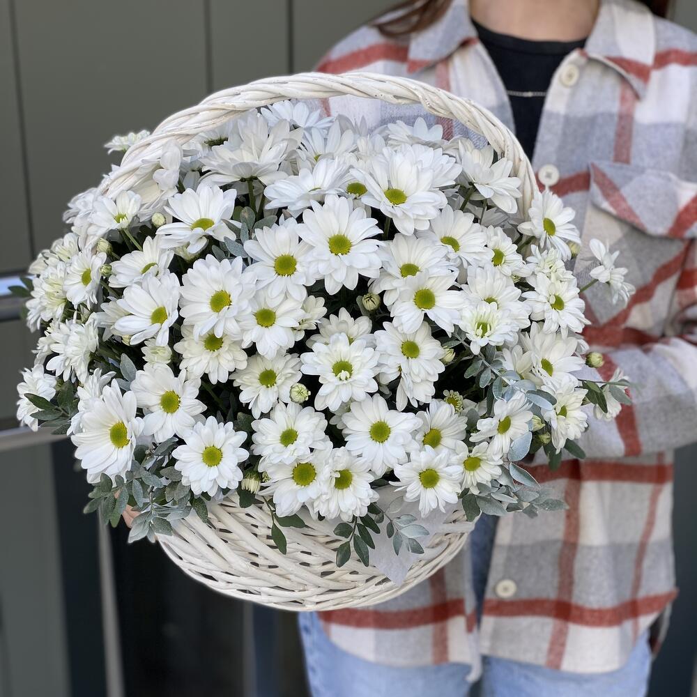 Корзина из белой ромашковой хризантемы