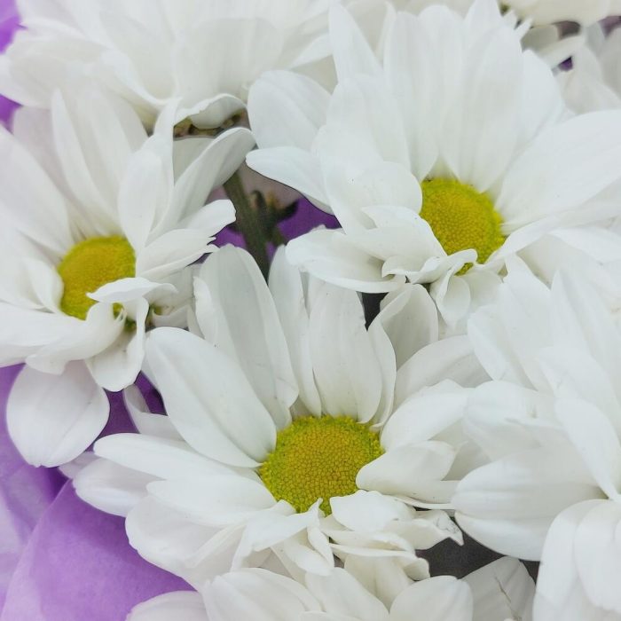 Упаковка дизайнерская – 1 шт.Хризантема кустовая ромашковая – 5 шт.