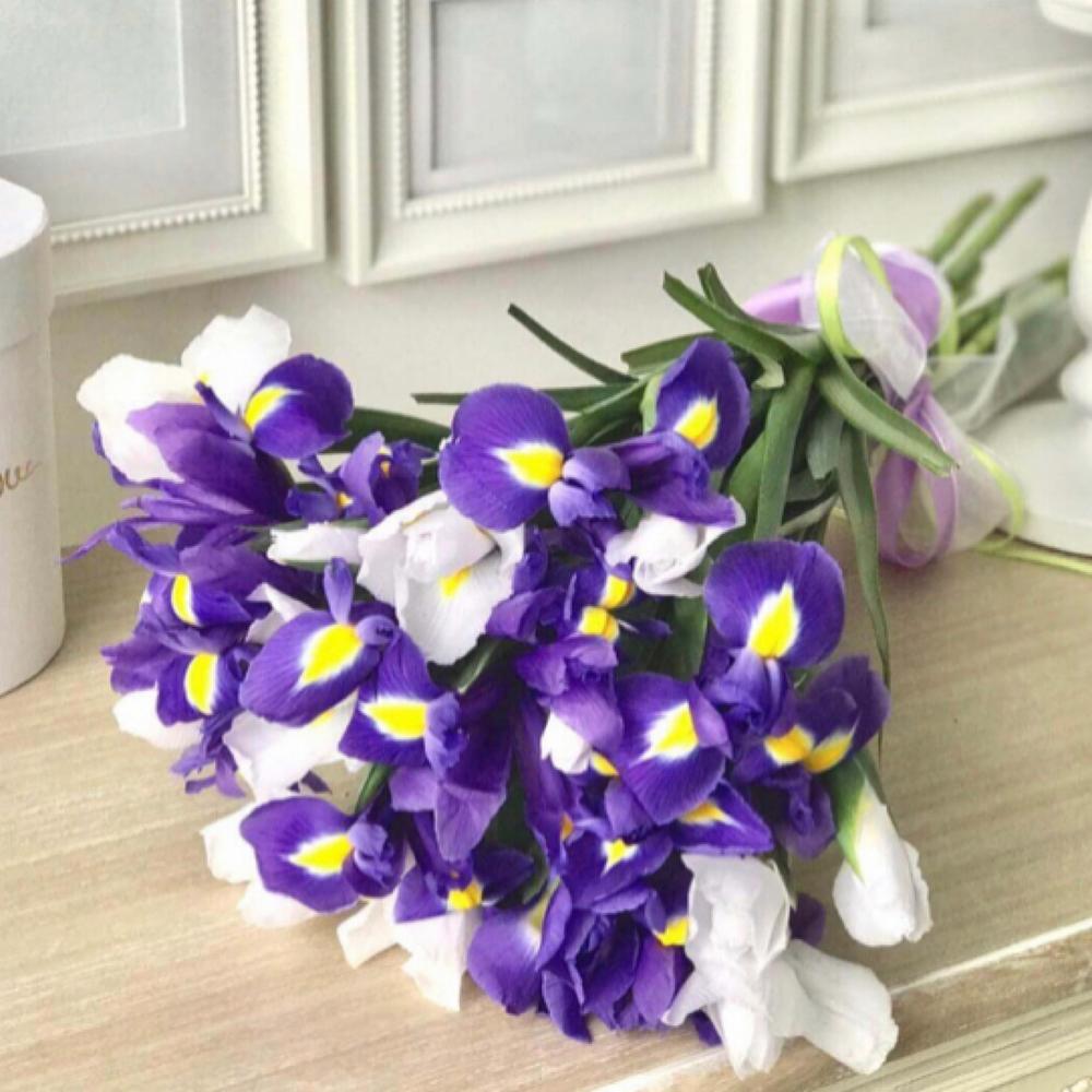 Букет из 29 синих и белых ирисов