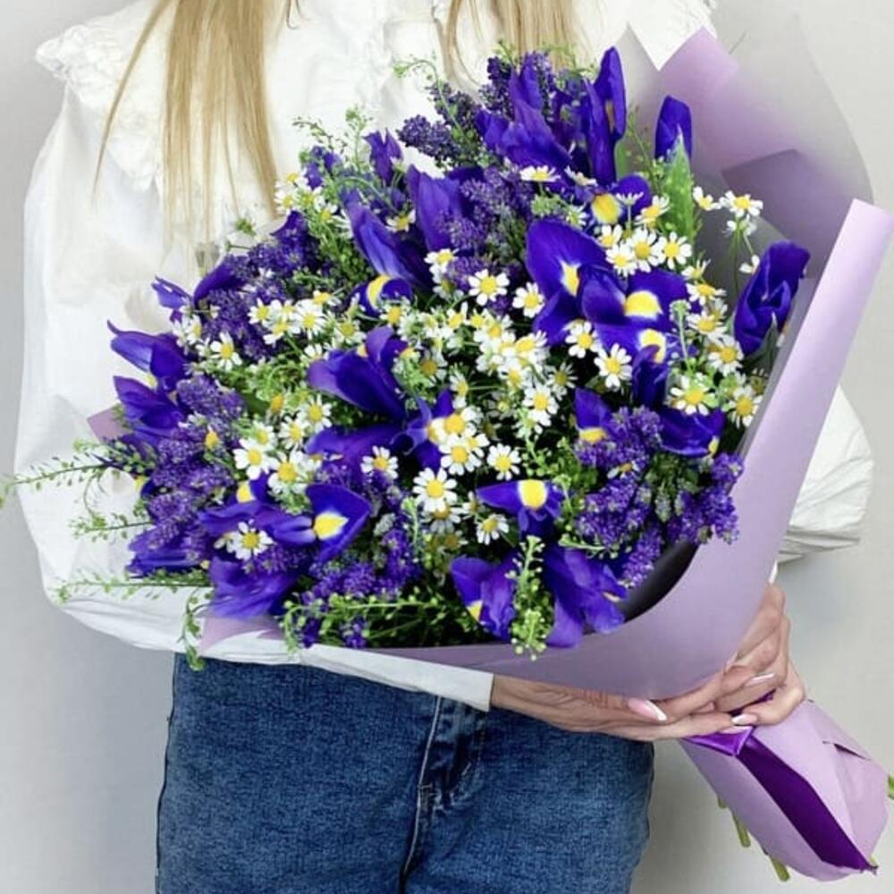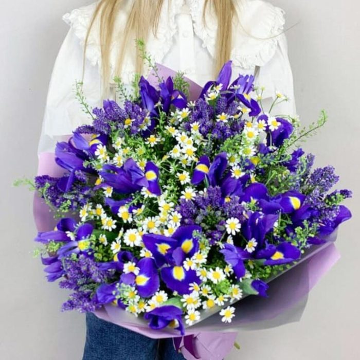 Вероника – 6 шт.Зелень – 3 шт.Матрикария – 6 шт.ирисы – 15 шт.