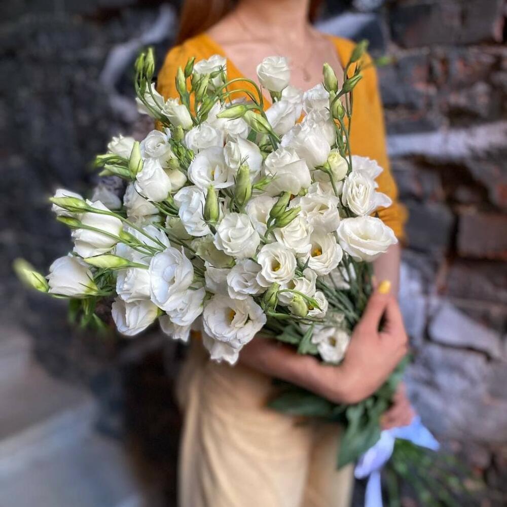 Букет из 11 белых эустом (лизиантусов) в стильной упаковке “Джун”