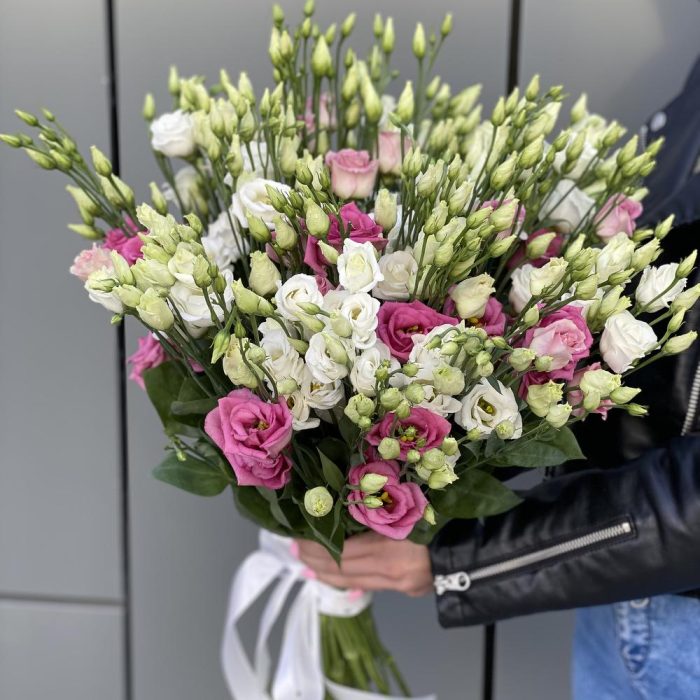 Эустома – 29 шт. Оформление атласная лента – 1 шт.