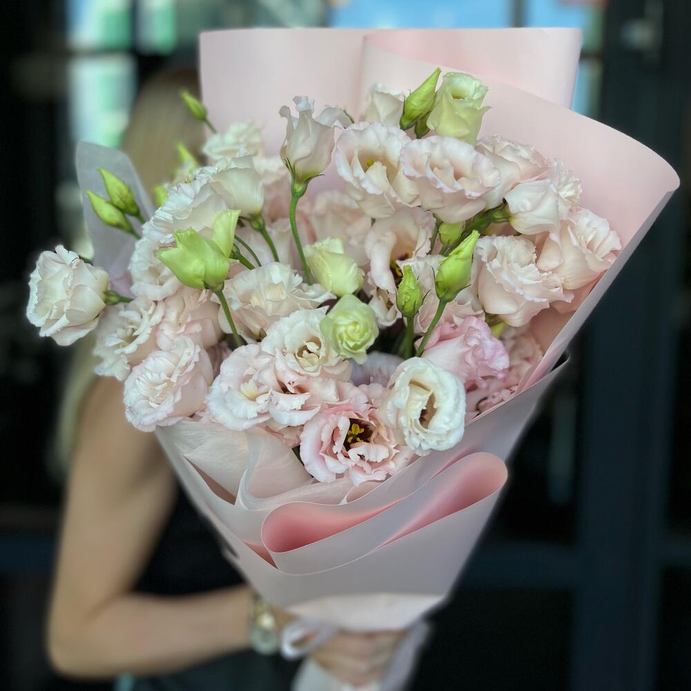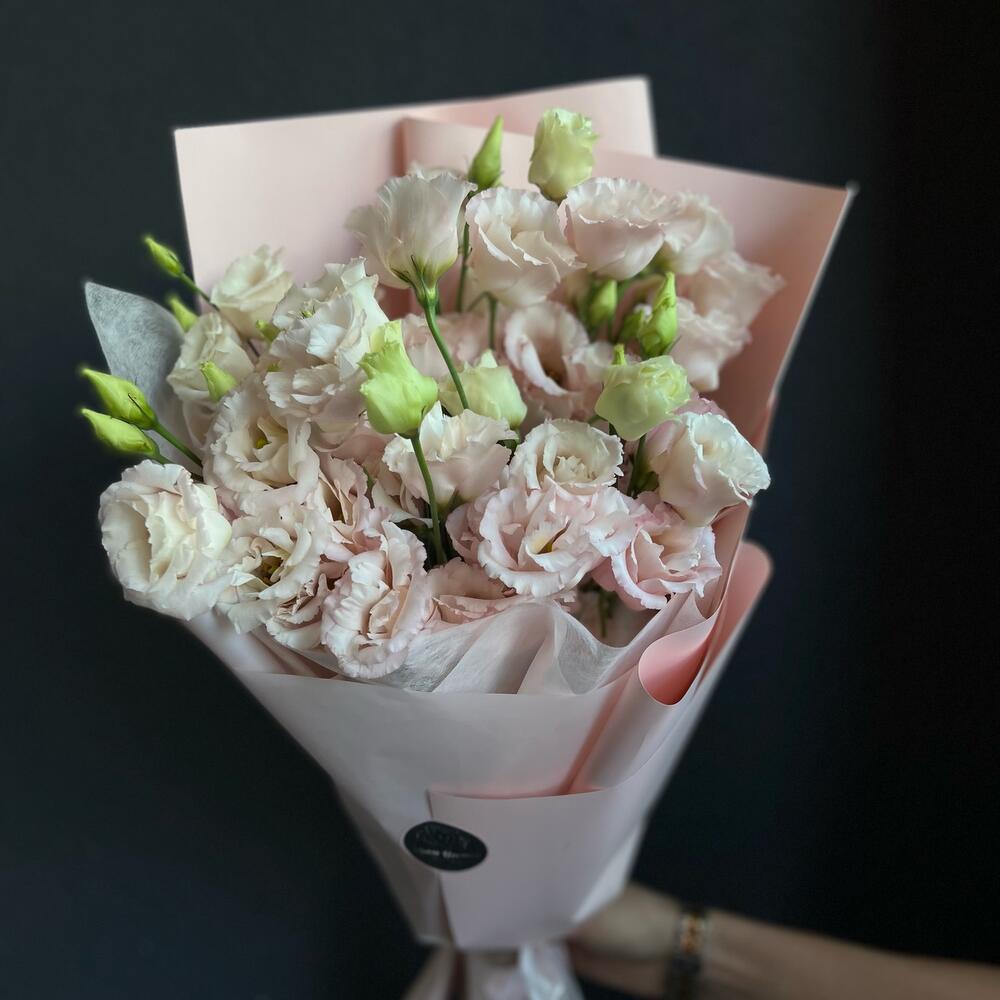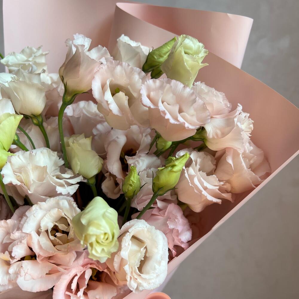 Лизиантус – 11 шт.Упаковка дизайнерская – 1 шт.Лента атласная – 1 шт.