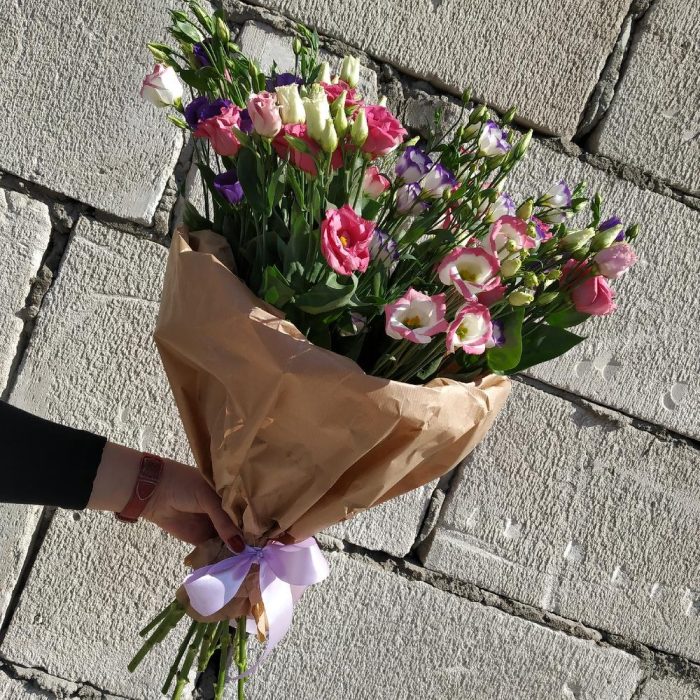 Лизиантус – 15 шт.Лента атласная – 1 шт.Упаковка дизайнерская – 1 шт.