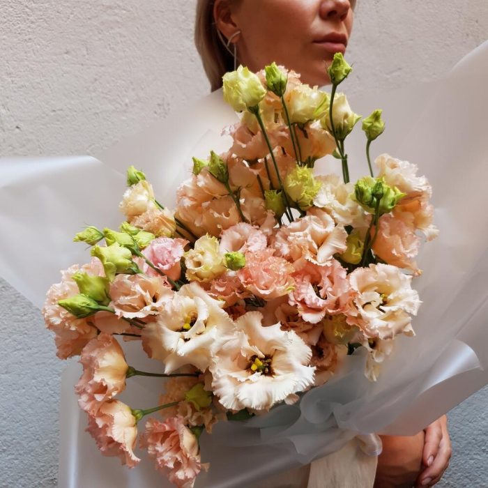 Монобукет “Розовый лизиантус”