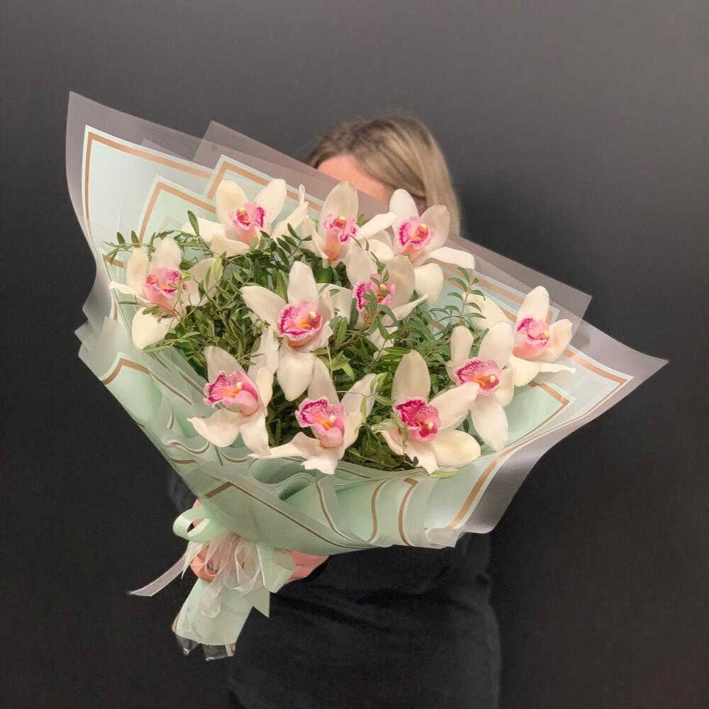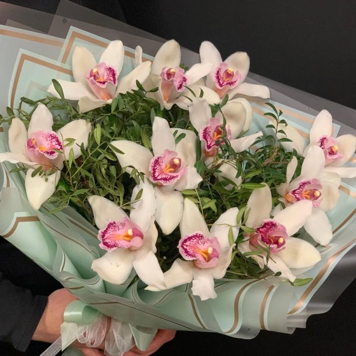 Орхидея Цимбидиум – 11 шт.удлинитель для орхидеи – 11 шт.Фисташка – 6 шт.Упаковка дизайнерская – 3 шт.
