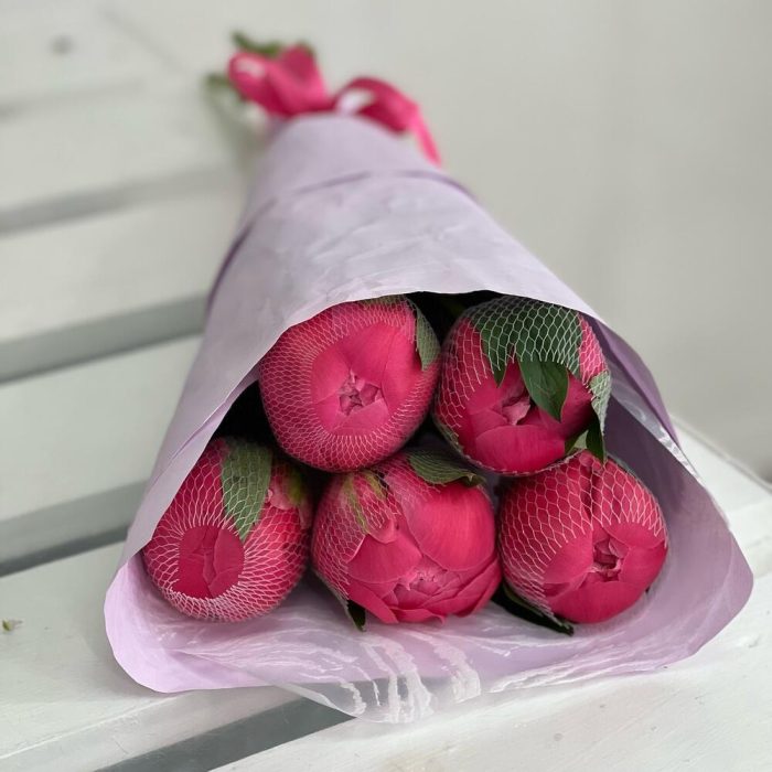 Пион Коралл Шарм (Coral Charm) – 5 шт.Упаковка – 2 шт.Лента атласная – 1 шт.