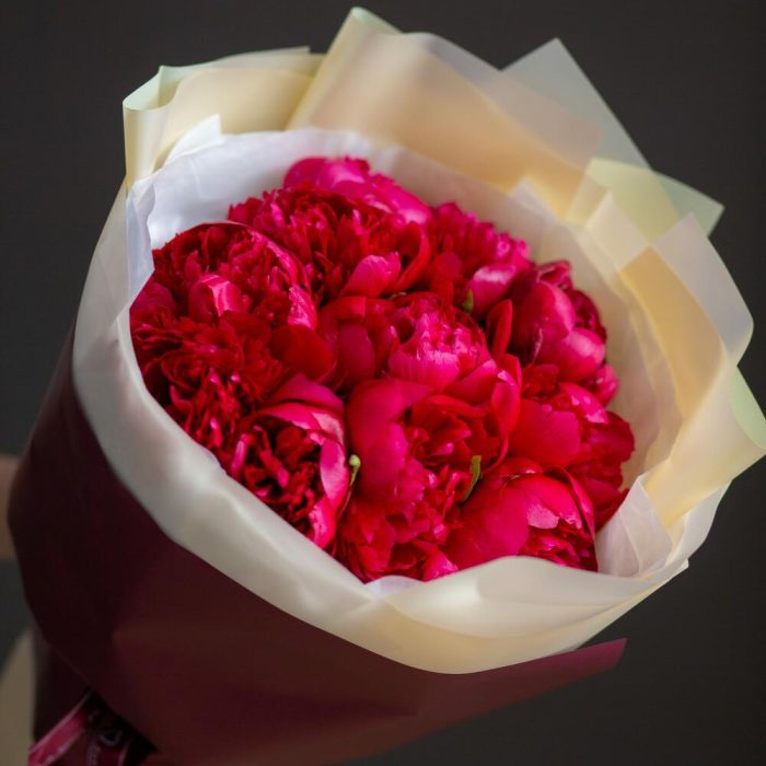 Букет из 11 бордовых пионов Standart