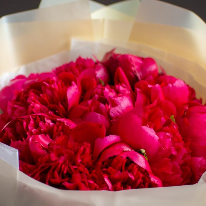 Атласная лента – 2 шт.Пион бордовый – 11 шт.Корейская пленка – 2 шт.тишью белая – 1 шт.