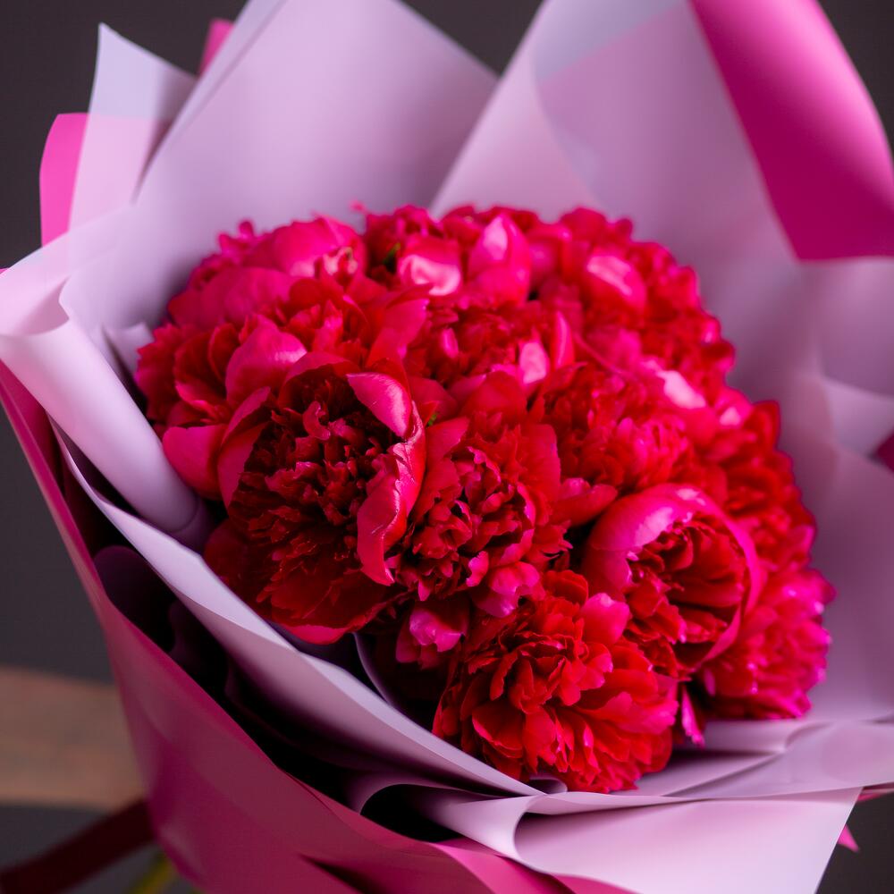 Букет из 15 бордовых пионов Standart