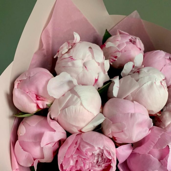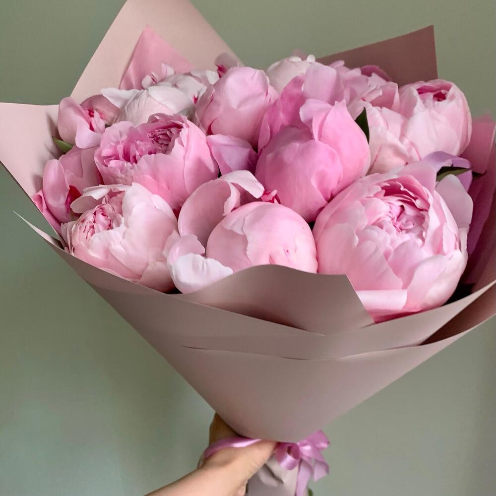 Лента – 3 шт.Тишью – 2 шт.Упаковка дизайнерская – 4 шт.пион розовый сара бернар – 15 шт.