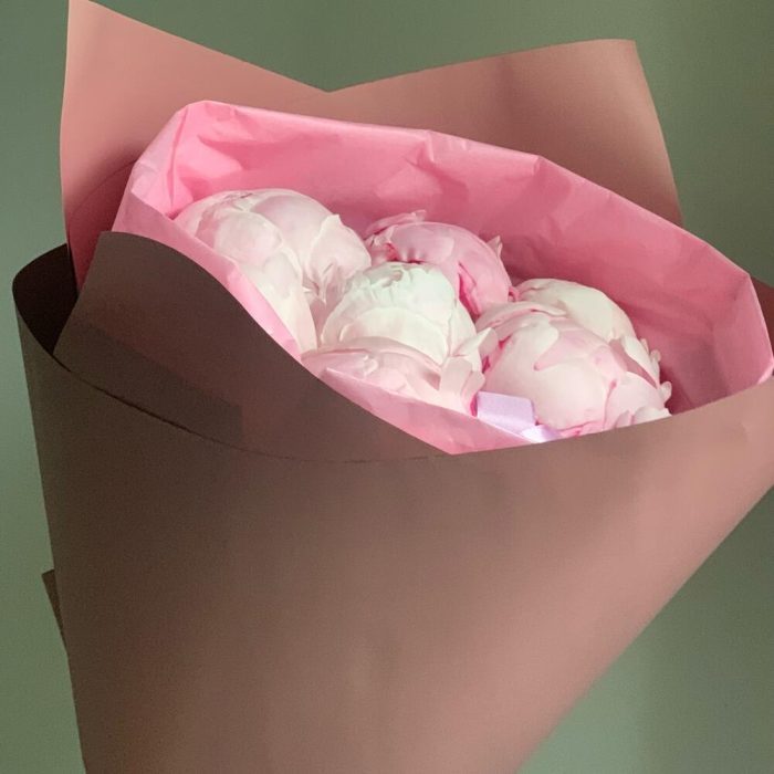 Лента – 3 шт.Упаковка дизайнерская – 4 шт.пион рене хортенс – 7 шт.