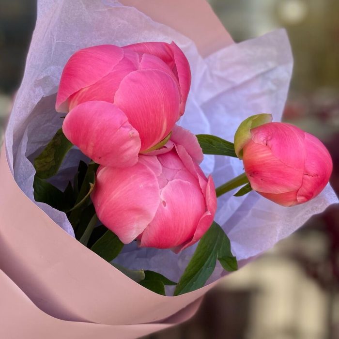 Пион Коралл Шарм (Coral Charm) – 3 шт.Лента атласная – 1 шт.Упаковка дизайнерская – 2 шт.