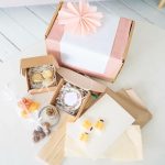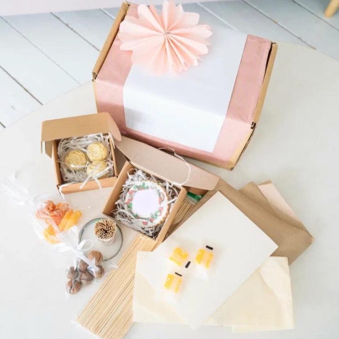 Розовая гипсофила в коробке с ручками