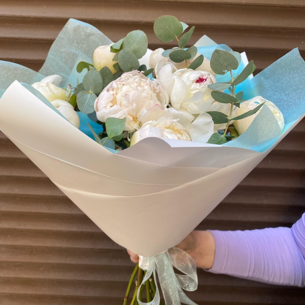Большой букет из пионовидных кустовых роз